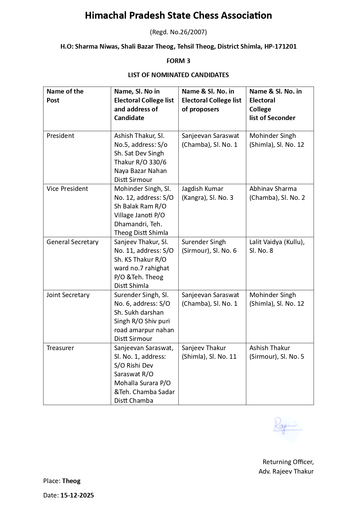 | 10.Jitesh Sharma(SNA) | Chamba | 94181-55979 |